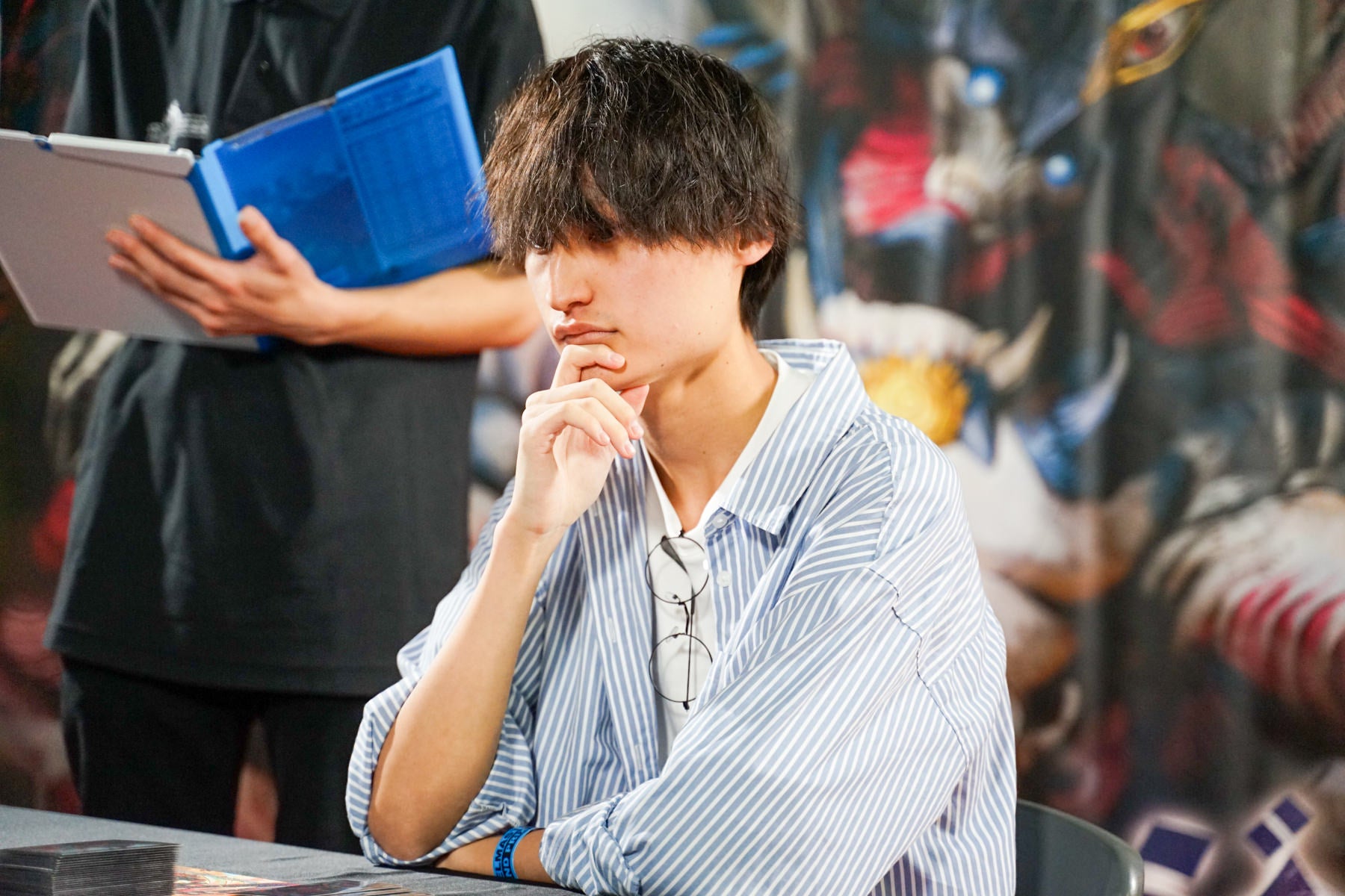 地元愛知県で活動するプレイヤーたる彼は、ループデッキへの造詣の深さで知られている。フィーチャー席は初めてとのことだが、デッキへの信頼の表れか緊張の色は見えない。