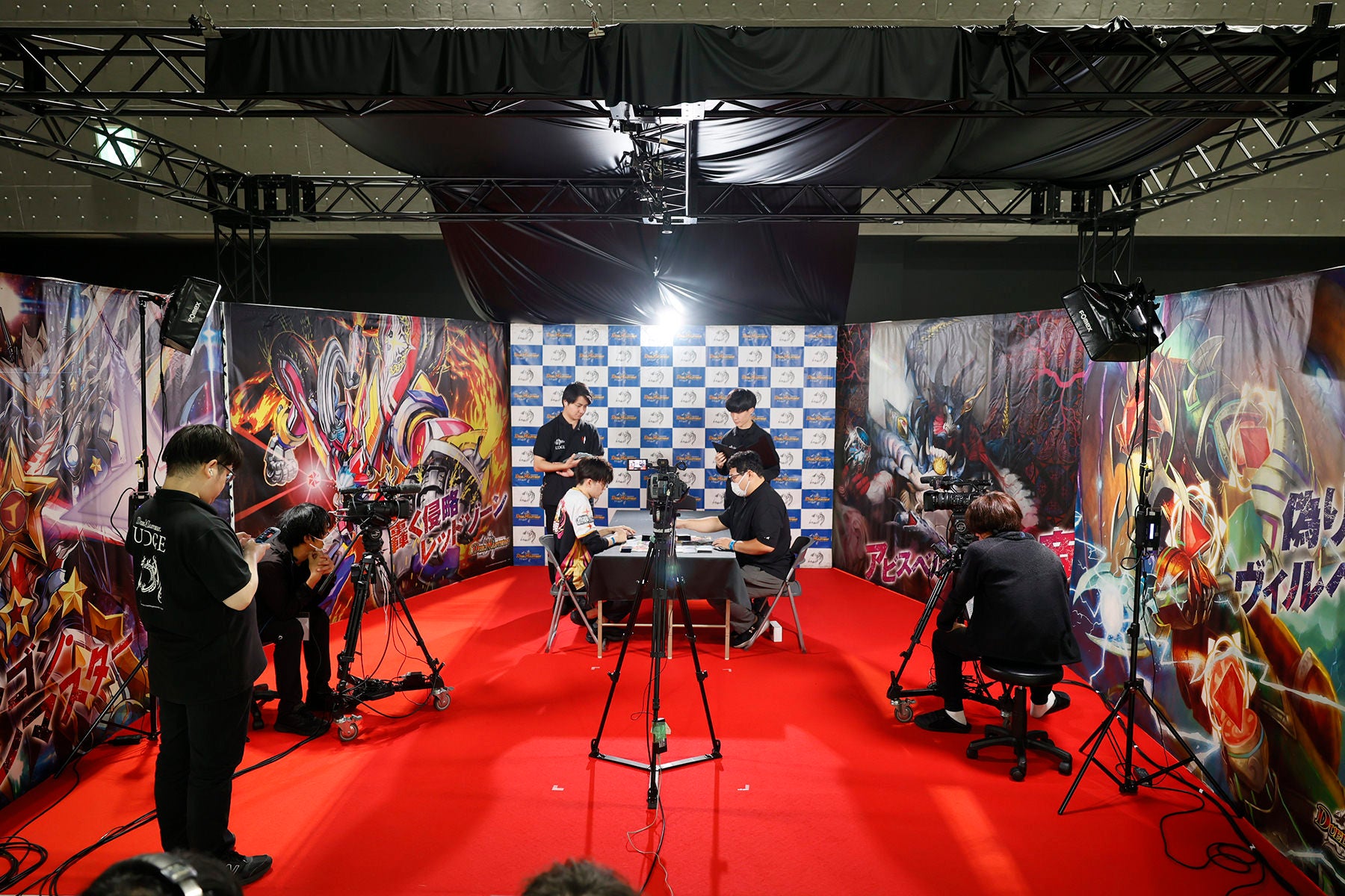 壁に取り囲まれたこちらのフィーチャーマッチエリアから、生配信をお届けしています。