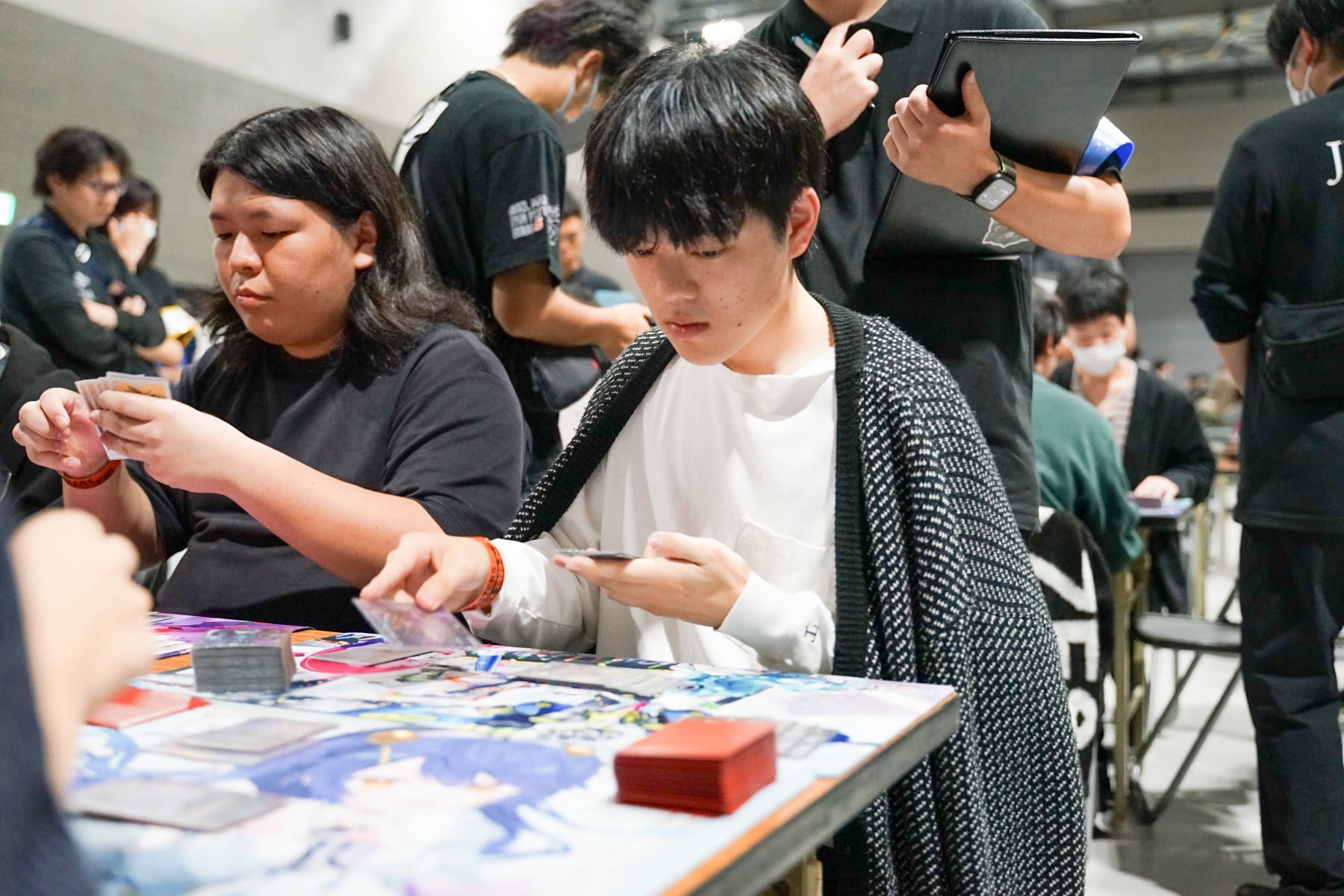「初ゾージアだ。」うなたろす/彩色硝子がCSプロモカードを含めて、《頂上連結 ロッド・ゾージア5th》の獲得が初めてだ、ということを共有すると、くちデュエリストのメンバーもそれに反応。お互いがベスト8となった嬉しさを語り合う。