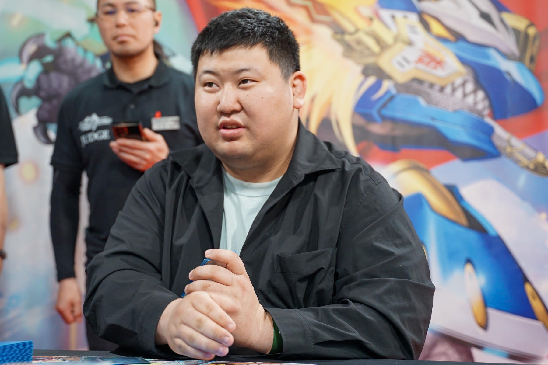 観客が近くなり過ぎないよう、柵こそあるがそれまで。フィーチャーテーブルに着く2人の対戦を会場のプレイヤーはより身近に感じられるようになっている。