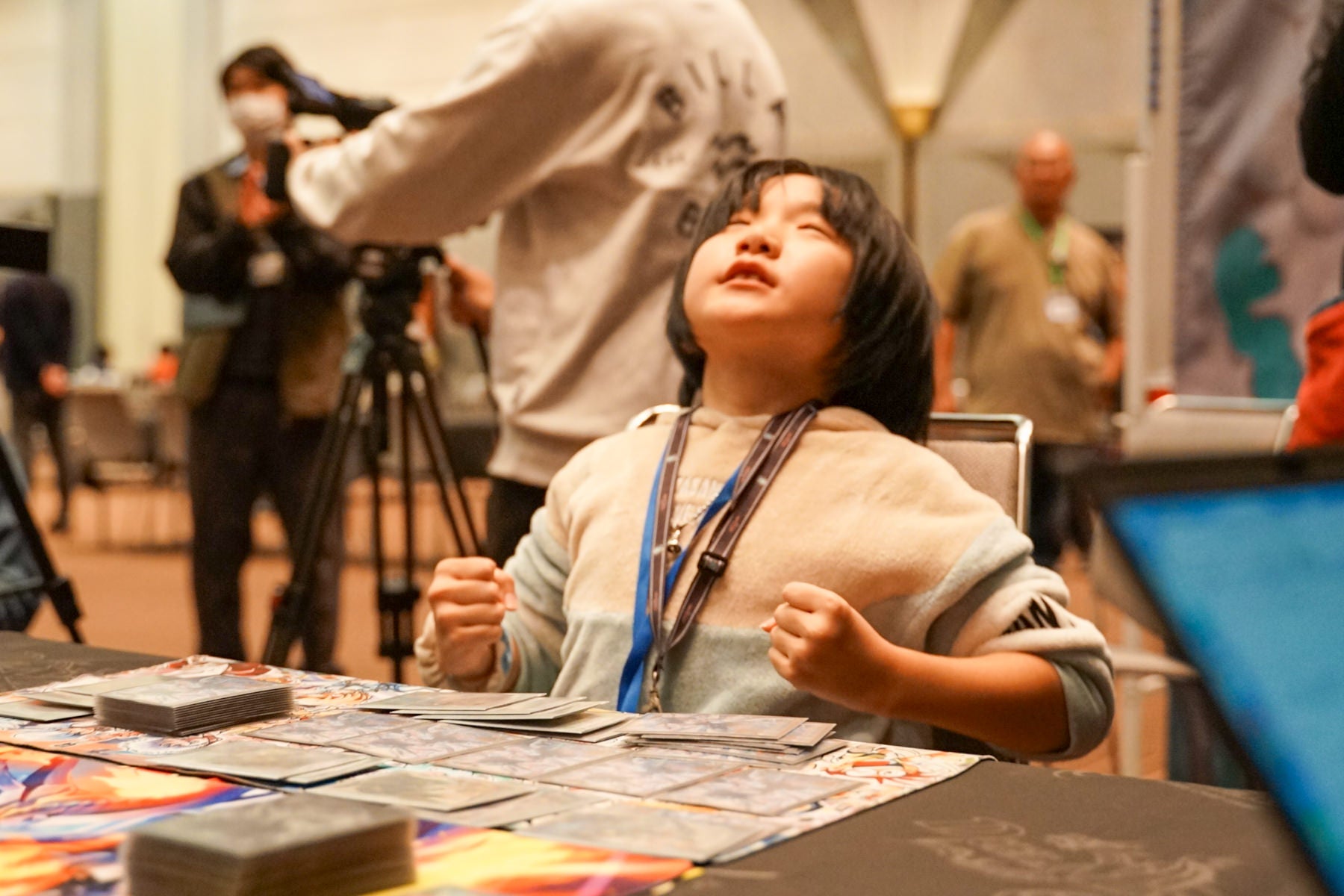実はRuka jr.の試合を本戦1回戦からちょくちょく見かけていたのだが、試合中は終始冷静であり、勝っても落ち着いているという印象だった。準決勝で逆転のトリガーを引いたときも、ゲームのルールの範囲でカードの使用を宣言するのみ……に、少なくとも筆者からは見えた。