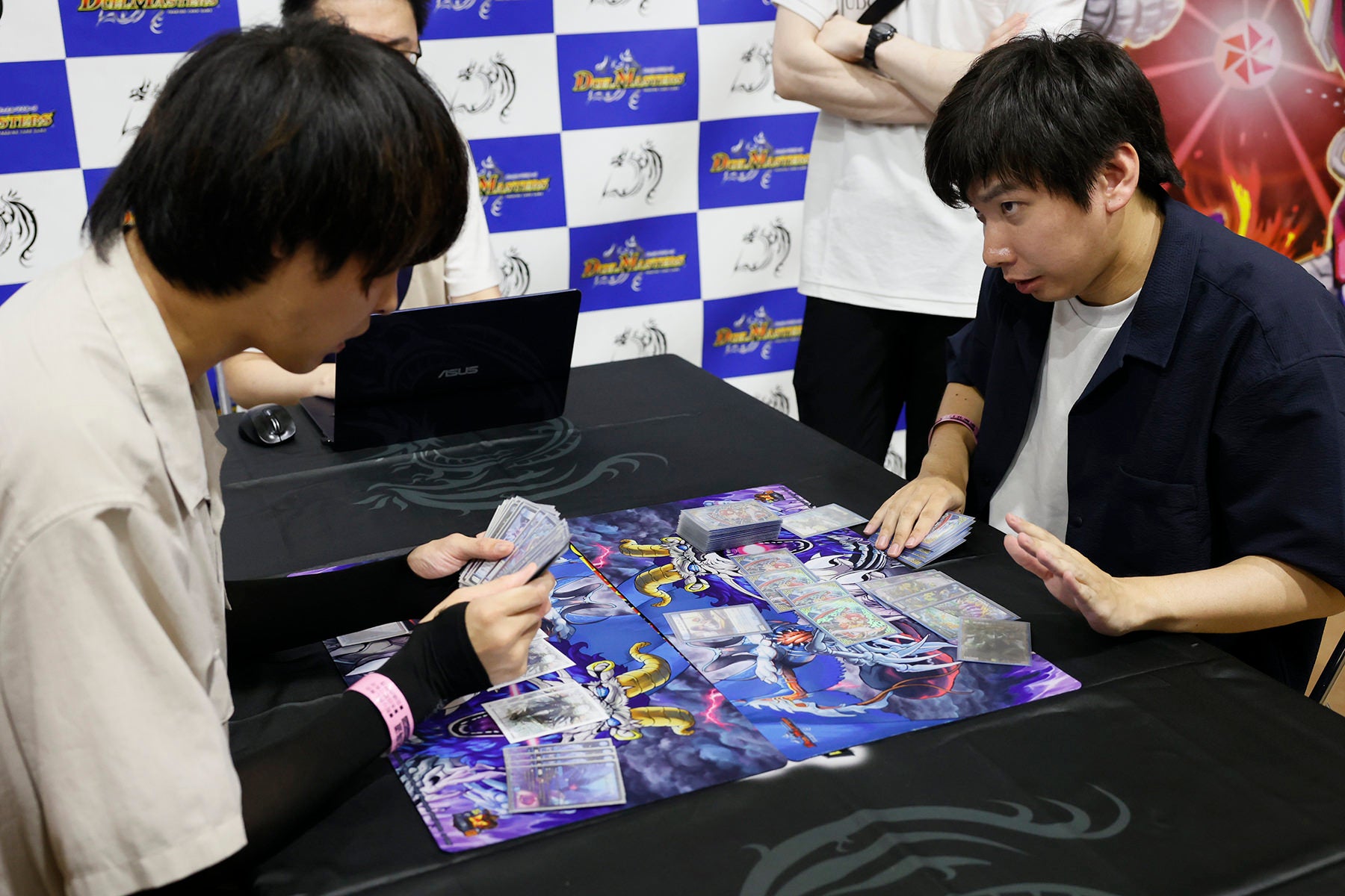 運が絡む以上、デュエル・マスターズというゲームにおいて常に無敗のまま勝ち続けることは現実的ではない。じゃんけんで永久に先攻を取り続けるようなことももちろん不可能だ。だが精度高く挑戦を積み重ねていけば、どこかのタイミングで無敗のまま勝ち続ける時は必ず訪れる。楽道とハバキにとって、今日がその時だった。挑戦しなければ、機会は訪れない。超CSに参加すると決めたこと。デッキを決めたこと。細部の枚数を決めたこと。1回戦で、2回戦で、3回戦で、分岐する選択肢の中から最適なプレイを信じて決めたこと。それらすべての選択と決断が、2人をここまで連れてきた。