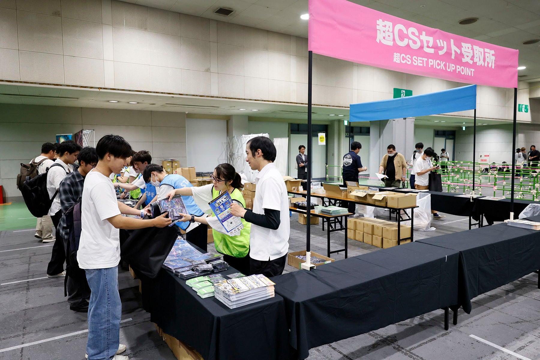参加者は超CSセットをこちらで受け取ります。大きな袋に中身を詰めてもらっているところ。