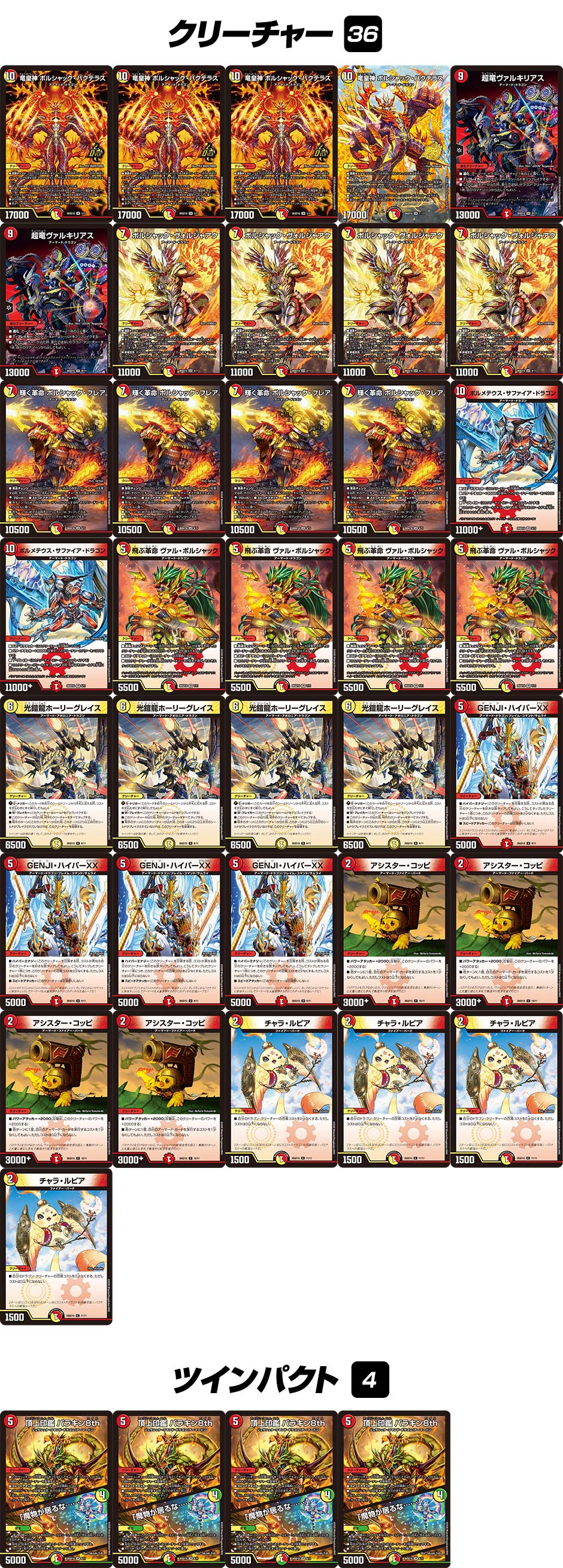 4枚 《竜皇神 ボルシャック・バクテラス》2枚 《超竜ヴァルキリアス》