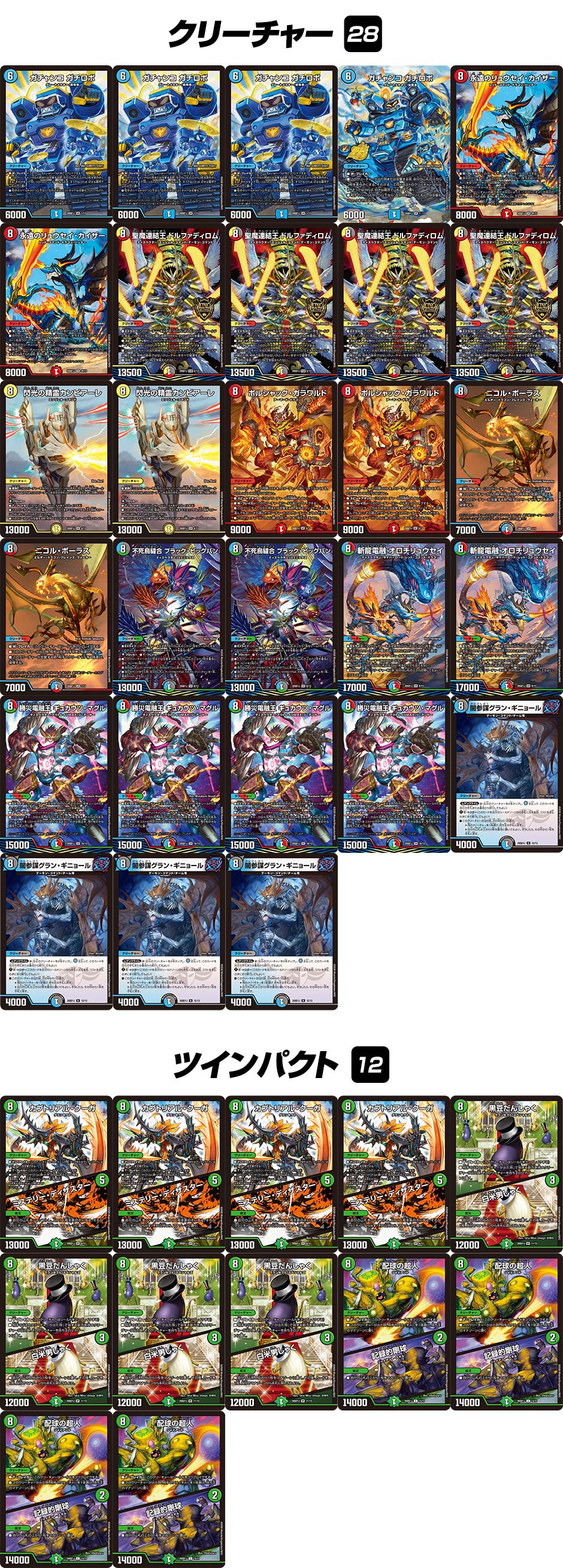 - 1. このデッキはとにかく!何がなんでも!マナ加速から《ガチャンコ ガチロボ》を出したい!《黒豆だんしゃく / 白米男しゃく》、《配球の超人 / 記録的剛球》はどちらもクリーチャー側が8コストでありながら呪文側がマナ加速のツインパクトカードなので、このデッキと相性抜群!