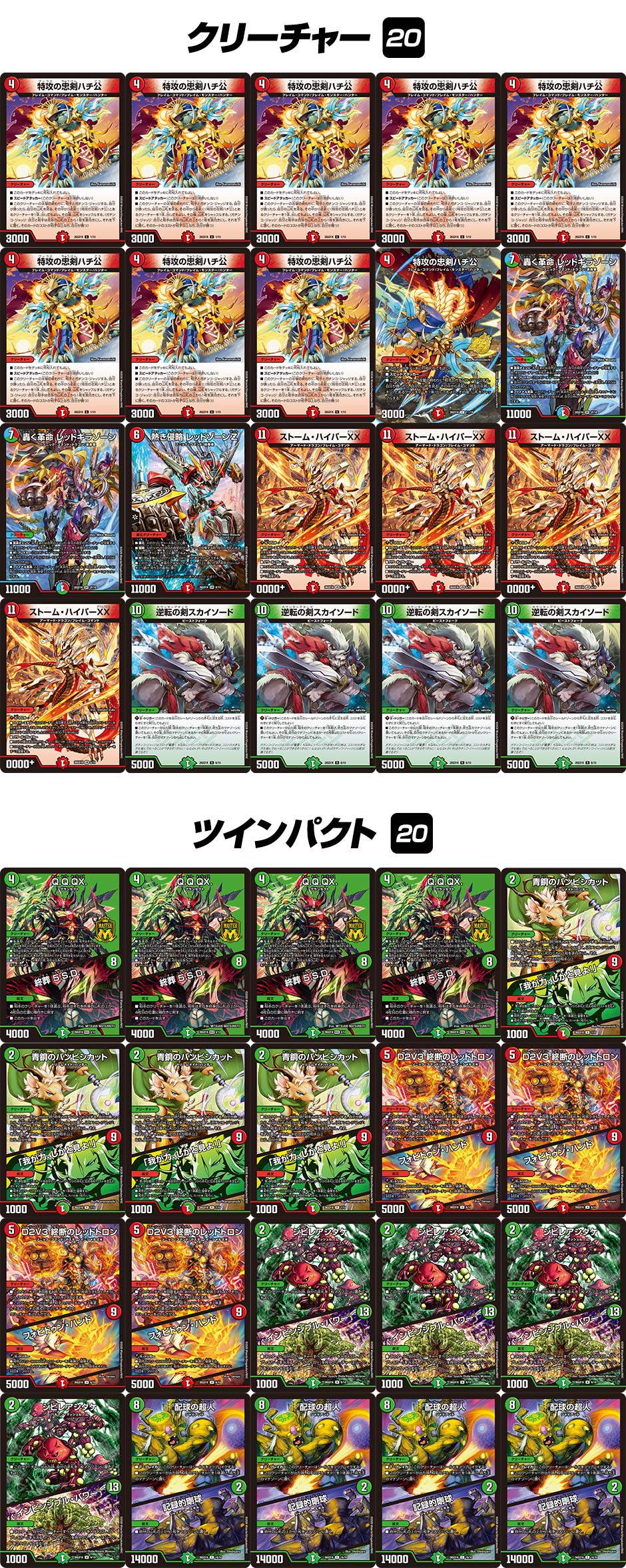 - 2. とにもかくにも《特攻の忠剣ハチ公》を早く召喚したいので、まずは2ターン目に≪青銅のバンビシカット≫か≪記録的剛球≫を実行し、マナを加速して4マナに到達することを目指そう!邪魔なクリーチャーは≪D2V3 終断のレッドトロン≫の強制バトルで排除し、《特攻の忠剣ハチ公》で即攻撃できる態勢を整えるのだ!準備が整ったら、あとは「ガチンコ・ジャッジ」に賭けて《特攻の忠剣ハチ公》で積極的に攻撃するだけ!たとえ倒しきれなくても、《特攻の忠剣ハチ公》を大量にバトルゾーンに並んで一気に有利になるので、チャンスがあったら飛び込む思い切りの良さが重要だ!